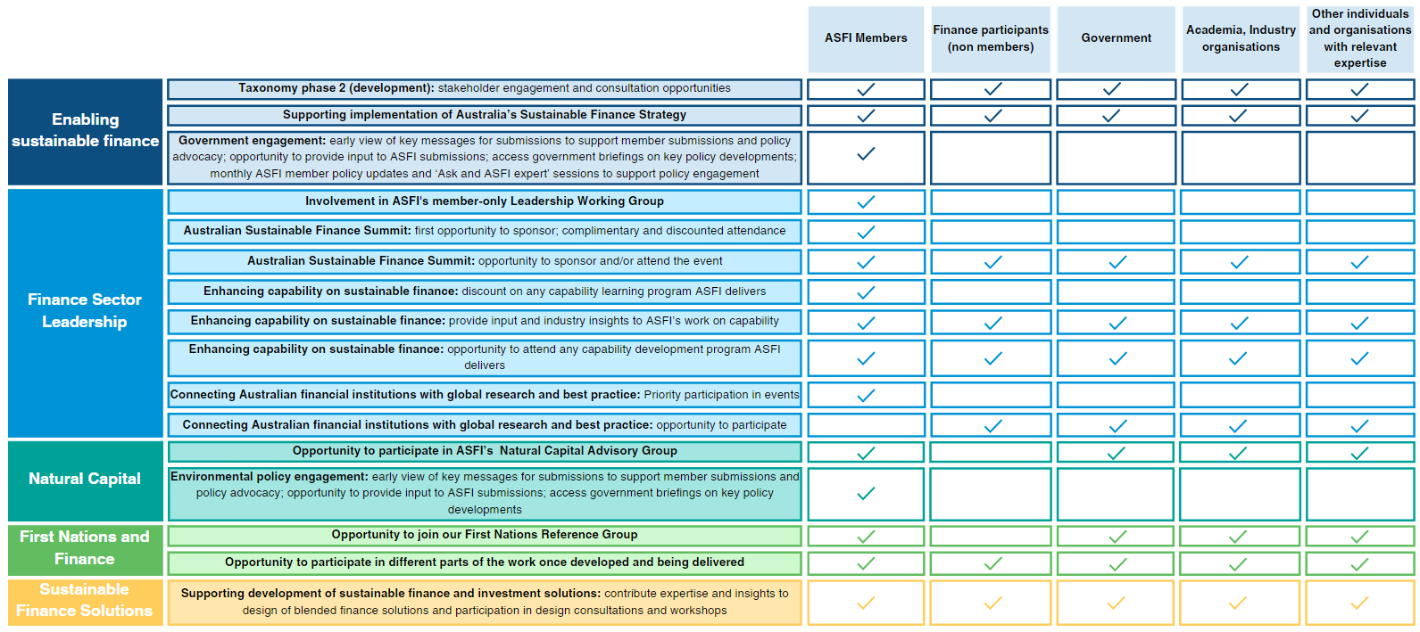 Reducing complexity for ASFI members: Partnering will enhance coordination between ASFI and other organisations, simplifying the sustainable finance landscape for ASFI members and the system more broadly.