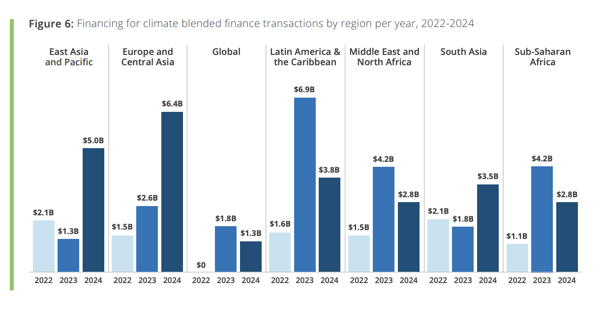 In East Asia and the Pacific, where the proportion of climate transactions increased by 77%[1] from 2023 to 2024, while Europe and Central Asia doubled over the same period. Southeast Asian countries which recorded a 10% increase in blended finance flows for climate in 2024.